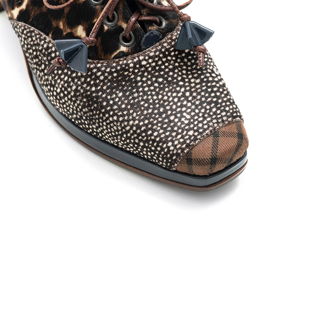 • Punta en tela Príncipe de Gales marrón: Suma un contraste elegante y refinado.