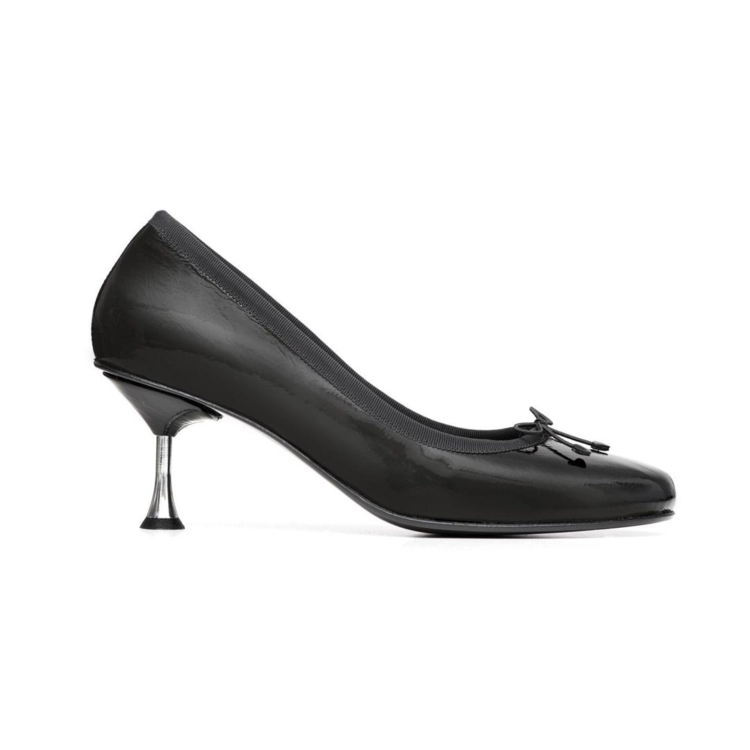 Esta ballerina en charol negro es una muestra de la elegancia clásica reinterpretada con detalles únicos que la hacen destacar. Con un diseño cuidado y acabados de alta calidad, este modelo es ideal para quienes buscan sofisticación y un toque sutil de modernidad.