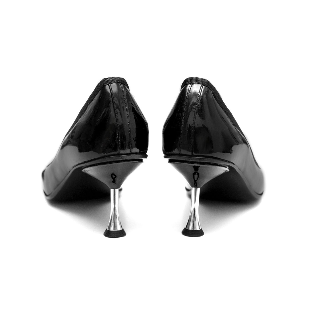 Ideal para quienes aprecian el lujo en los pequeños detalles, esta ballerina en charol negro se convierte en una pieza versátil y atemporal para cualquier guardarropa refinado.