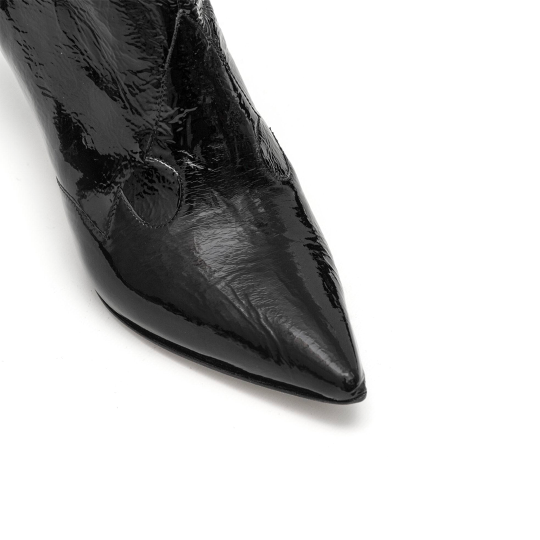 • Detalle tipo tejano en charol écrasé negro: Aporta un brillo sutil y un toque distintivo.