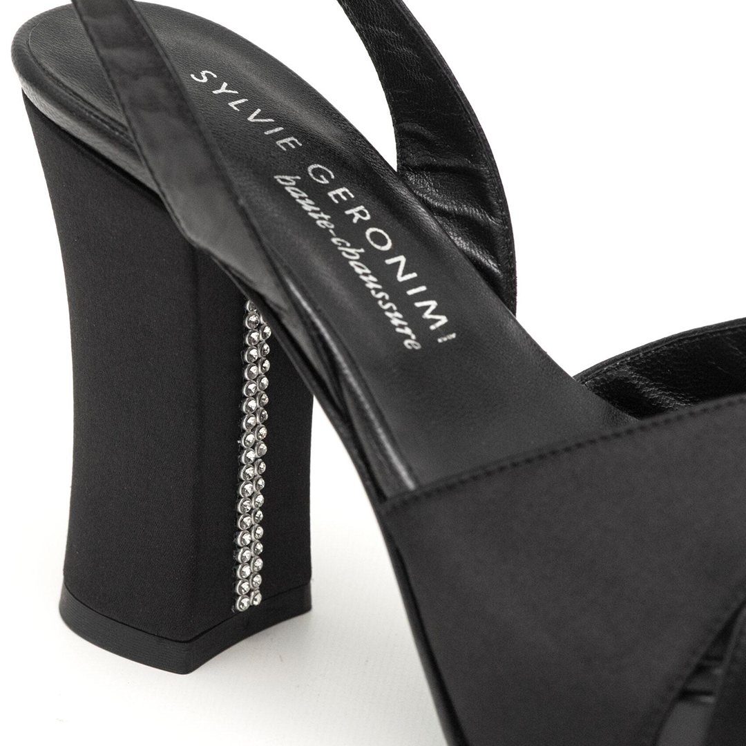 • Taco forrado de 10 cm con detalle de strass: Añade altura y un toque de brillo discreto.