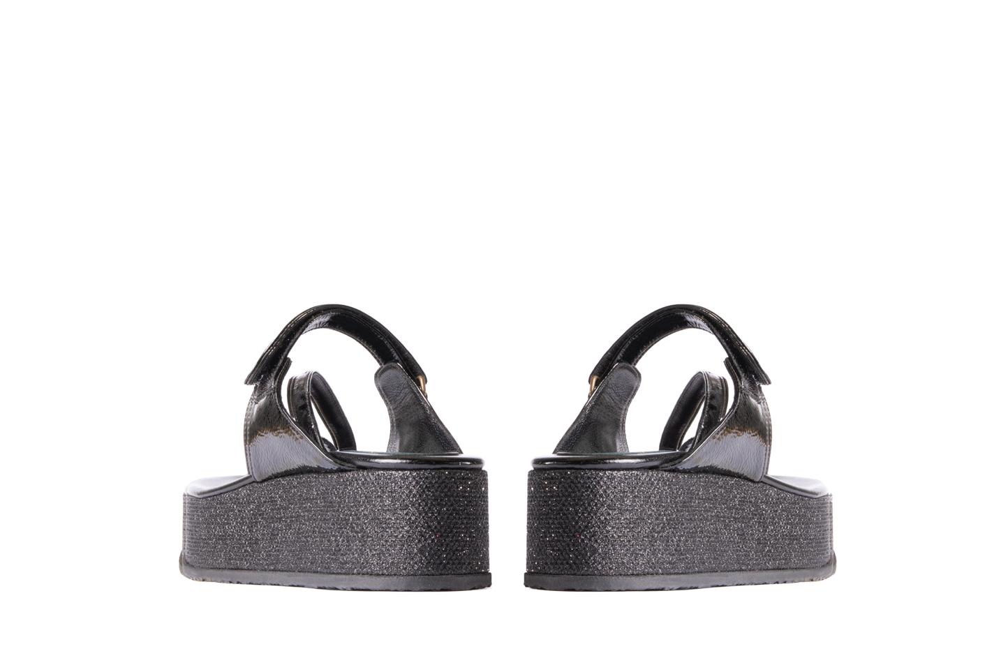 • Capellada en charol écrasé negro: Brillo profundo y textura elegante para un diseño distintivo.
