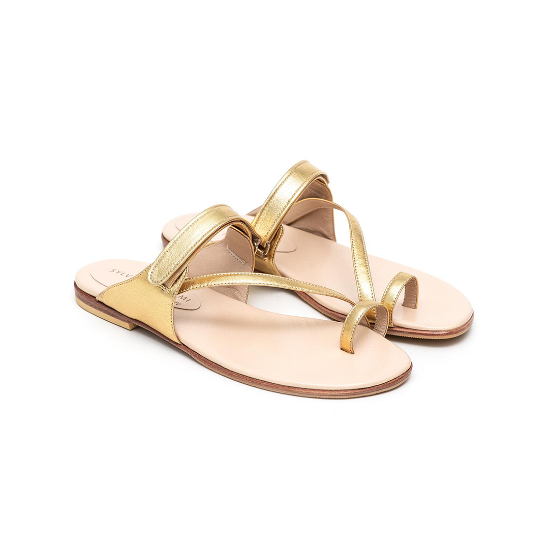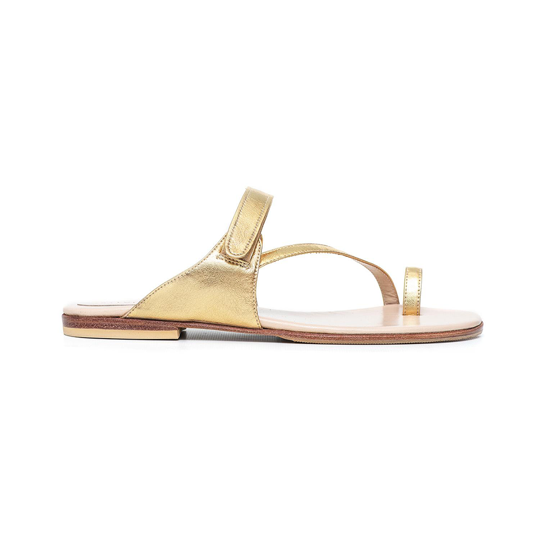 La Ojota Nadège Chata Oro combina líneas simples con materiales nobles, ideal para quienes buscan comodidad con un brillo sutil.