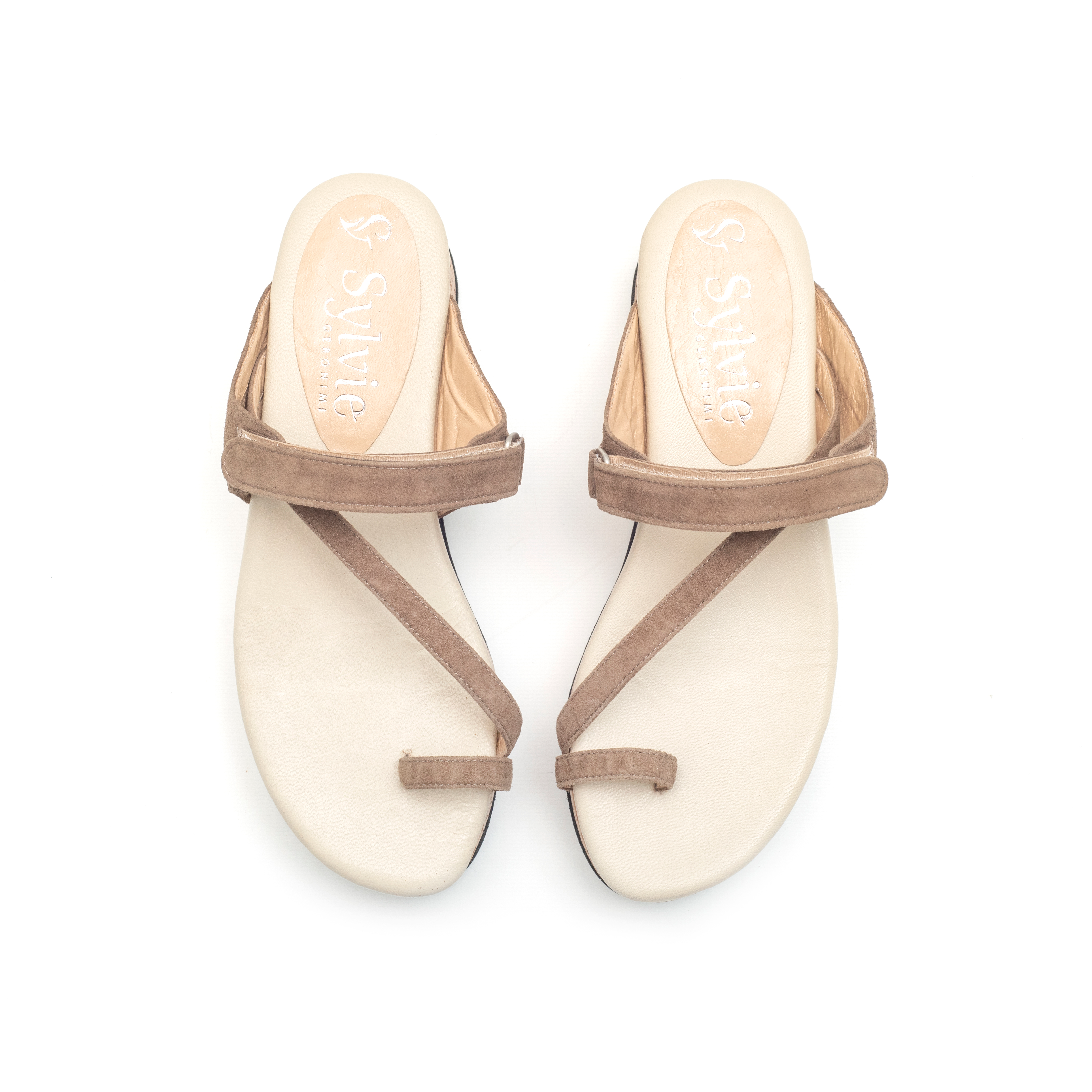 La Ojota Nadège Base Visón apuesta por la sobriedad y la calidez de los materiales naturales, ideal para quienes buscan comodidad con un toque elegante.