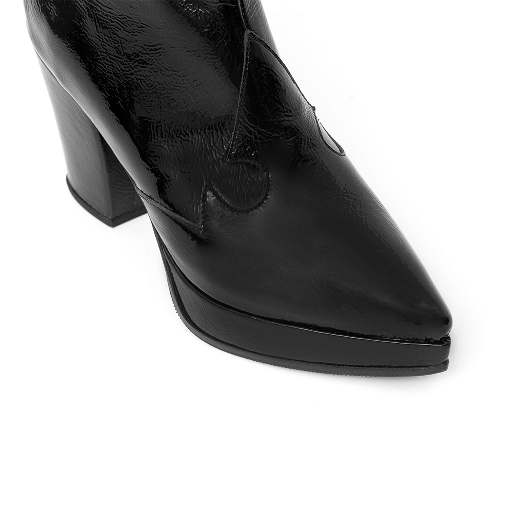 • Detalle tipo tejano en charol écrasé negro: Aporta un brillo elegante y un toque distintivo.