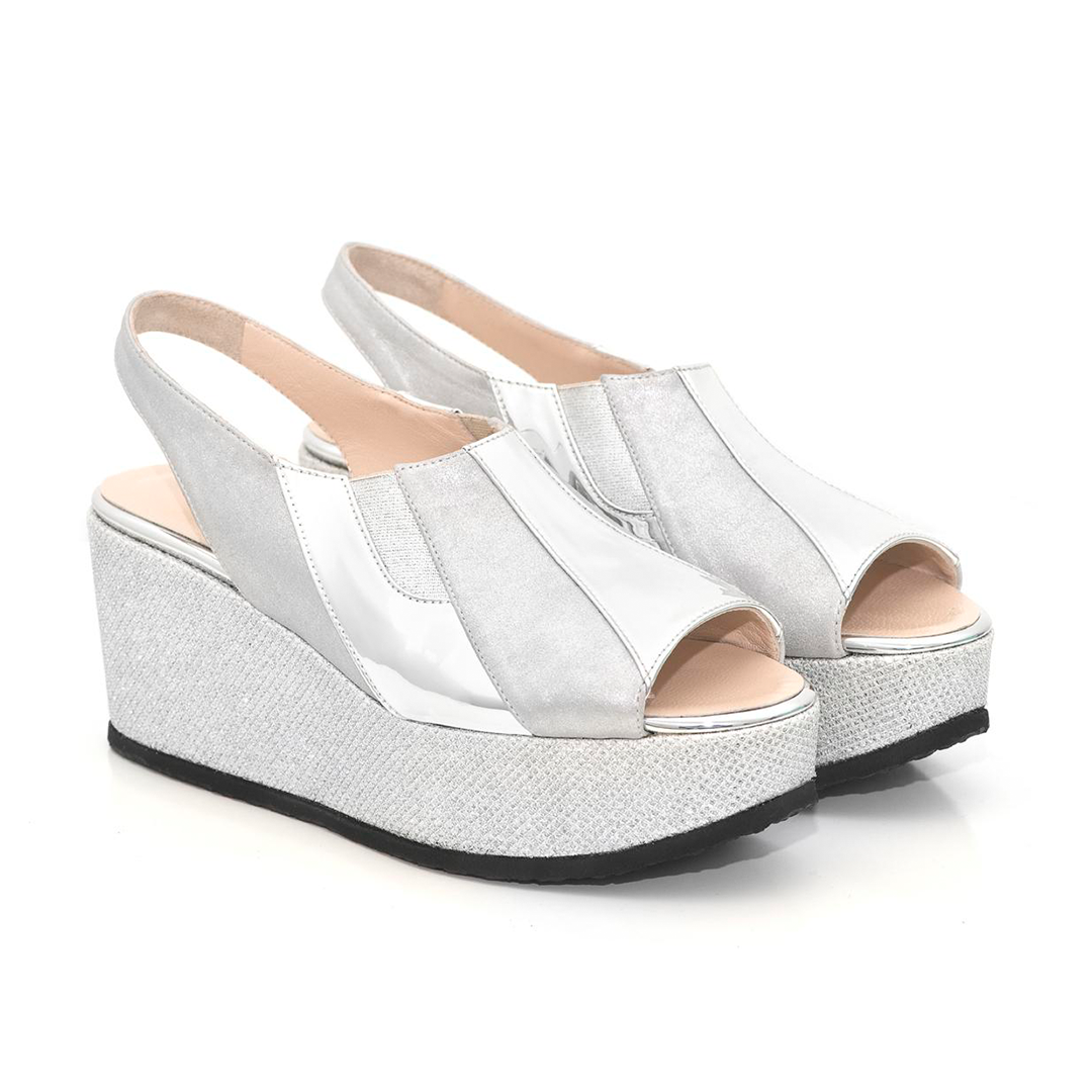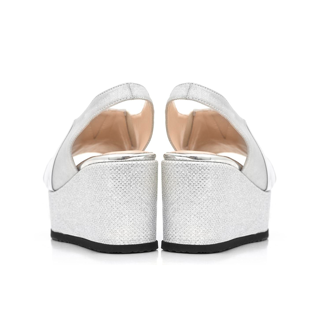 • Plataforma de 7 cm forrada en lurex plata: liviana, estable y con impronta moderna.